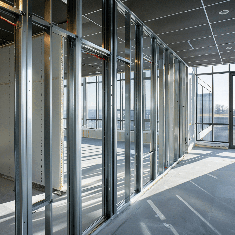 Our licensed team works fast. We compress the frame right here and can handle any job you have, from simple room dividers to complete custom office setups.